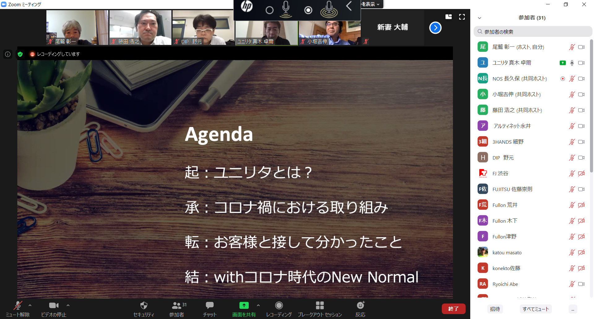 前回の会合開催が2月ですから、ブランクもあり且つオンライン開催ということで進行が不慣れなところもありますが宜しくお願いします。