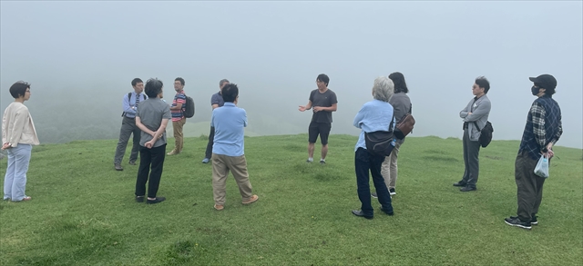 当日は牧場長の牧原 亨さんより、牧場を一望できる場所にて、山地酪農による実際の牧場運営について詳しくお話を伺いました。