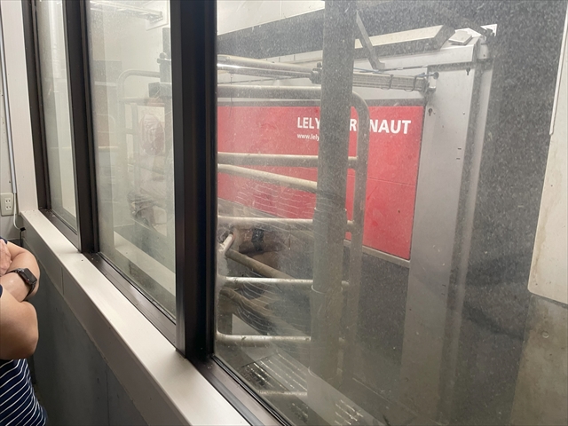 ロボットを導入して、牛へのストレスを軽減しているとのことで、実際にそのロボットも見学させていただきました。