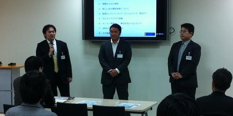 またクラウドビジネス推進部会においては、その基盤を利用し様々な分野に特化したクラウドビジネスの提案を行います。是非とも取り組みたい「震災対策クラウド」や「教育クラウド」、また「物流」に特化したメンバー主導で「物流クラウド」のビジネスモデル化も進めて行きたいと考えています。